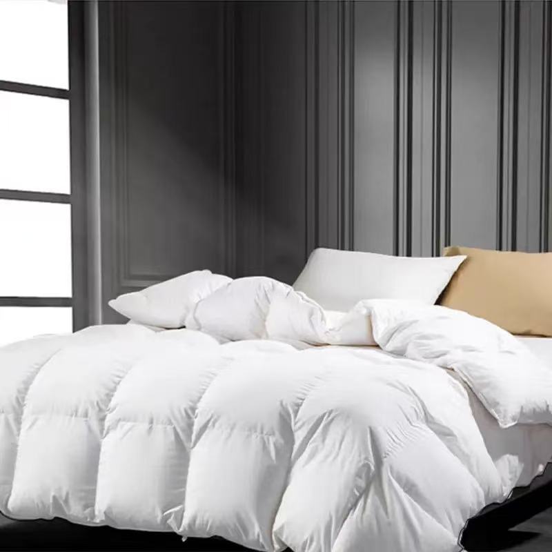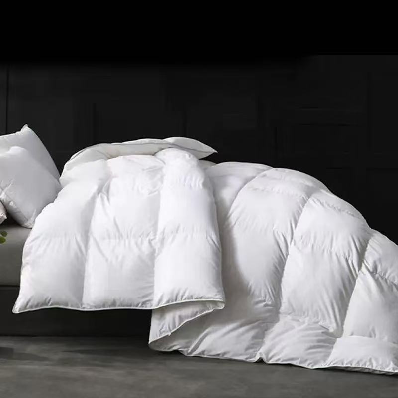 Hotel duvets are also called hotel comforters, hotel quilts in different countries. There are two main filling material for hotel duvets. The one is siliconized synthetic microfiber, and the second one is down feather. Siliconized synthetic microfiber is also called hypoallergenic down-alternative microfiber, because it has similar hand feeling as down. Microfiber also have different qualities, like 6D, 3D, 1.3D, 0.98D used in different products. Microfiber hotel duvets have seized a large number of hotel markets because of its characteristics of no odor, no deformation and high cost performance. Down feather comes from duck and goose. Down feather duvets have higher warmth retention, better fluffiness and workmanship, which are favored by high-end hotels, but price is also expensive. Due to animal protection, more and more hoteliers are choosing synthetic fiber products as a substitute. The commen filling weight for hotel duvets is 200gsm, 250gsm, 300gsm, 350gsm and 400gsm.